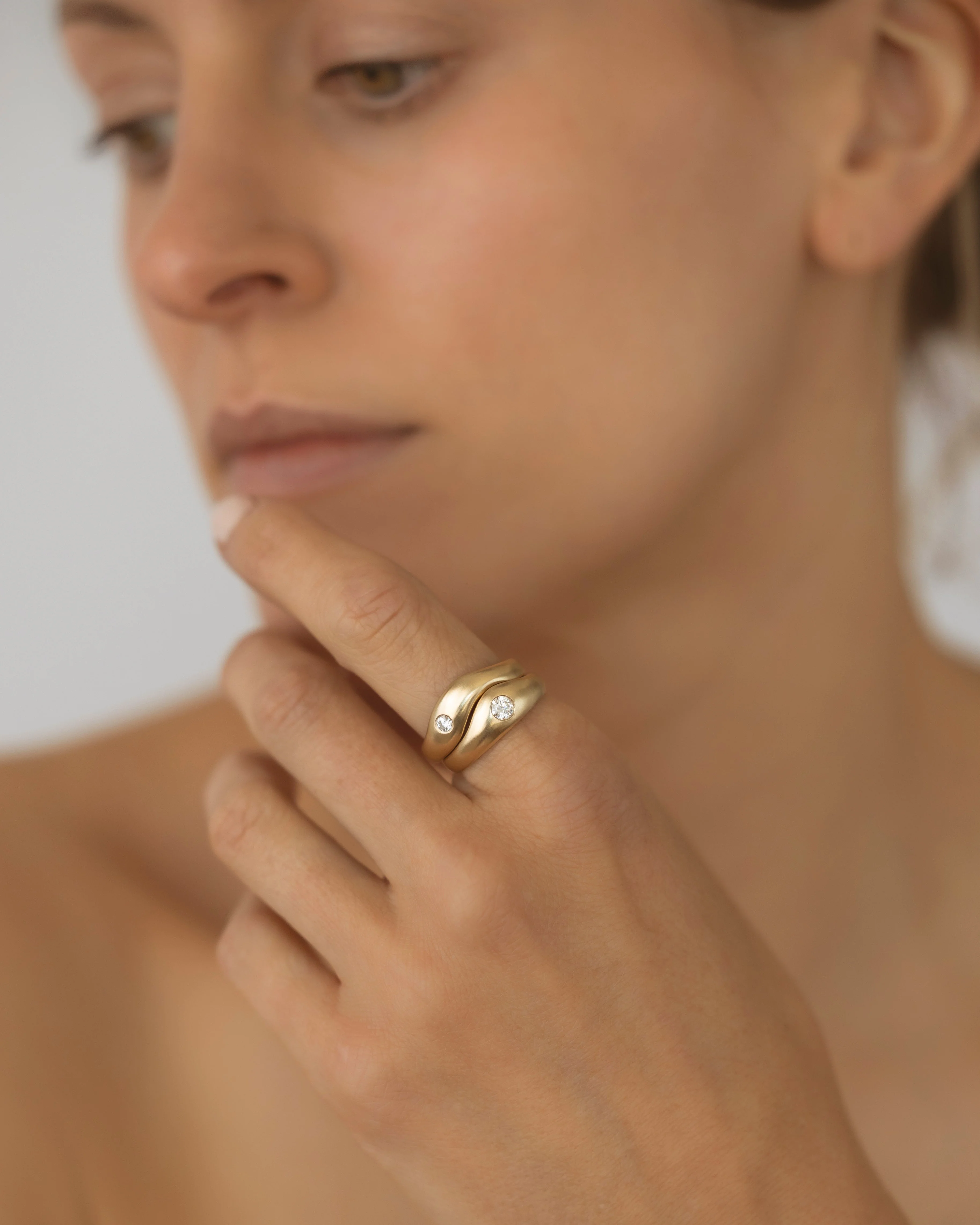 Goddesses of the Lune collection - these smooth curved rings meld together into unique stacks reminiscent of the golden curves of the aurora - keep them plain and buttery or choose an array of bright Natural Diamonds or Moissanites for the Aurore wave.