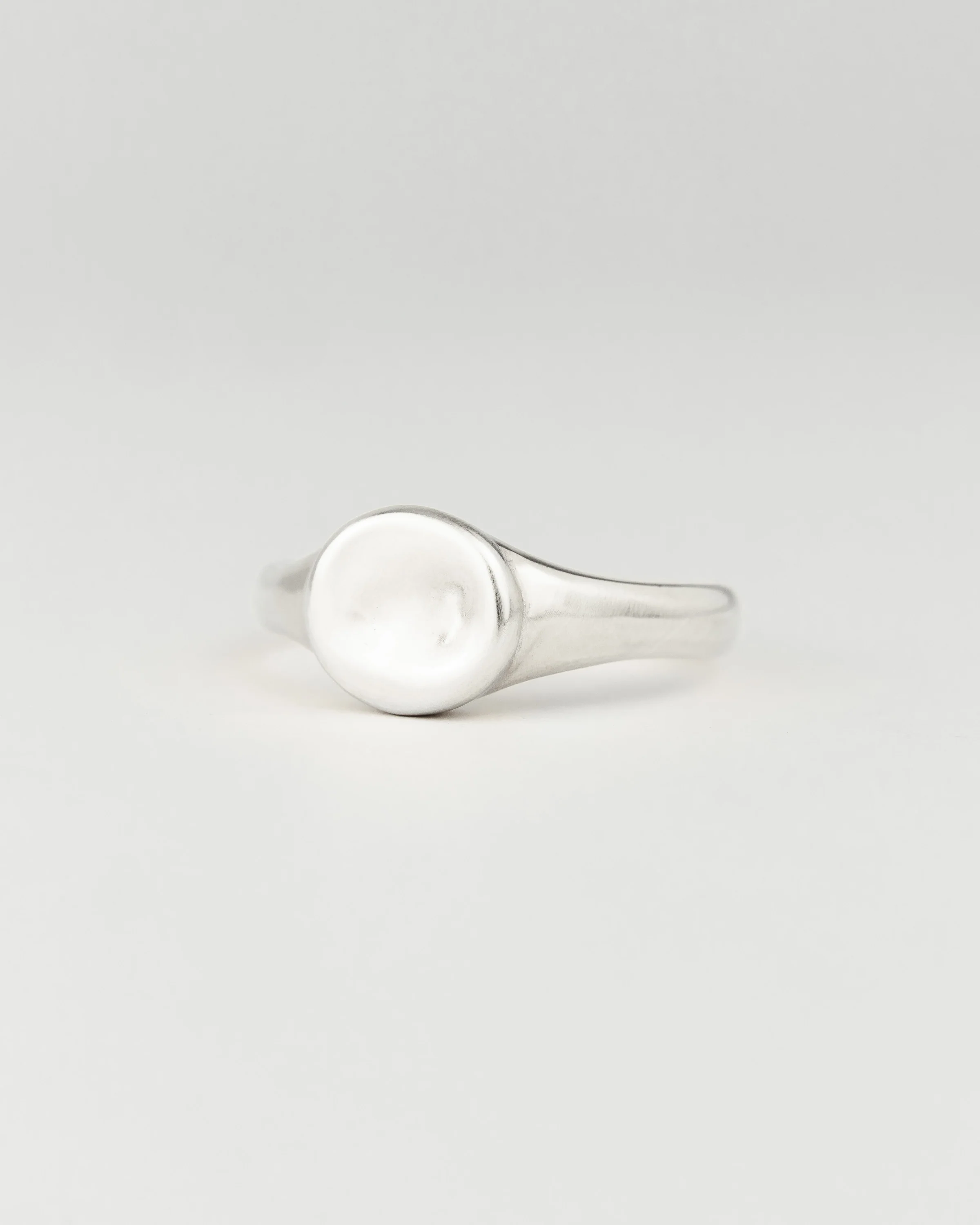The Baby Moon Signet embodies our signature molten and organic form in a compact silver signet ring, its buttery curves & fluidity echoing the imperfect beauty and strength of motherhood.