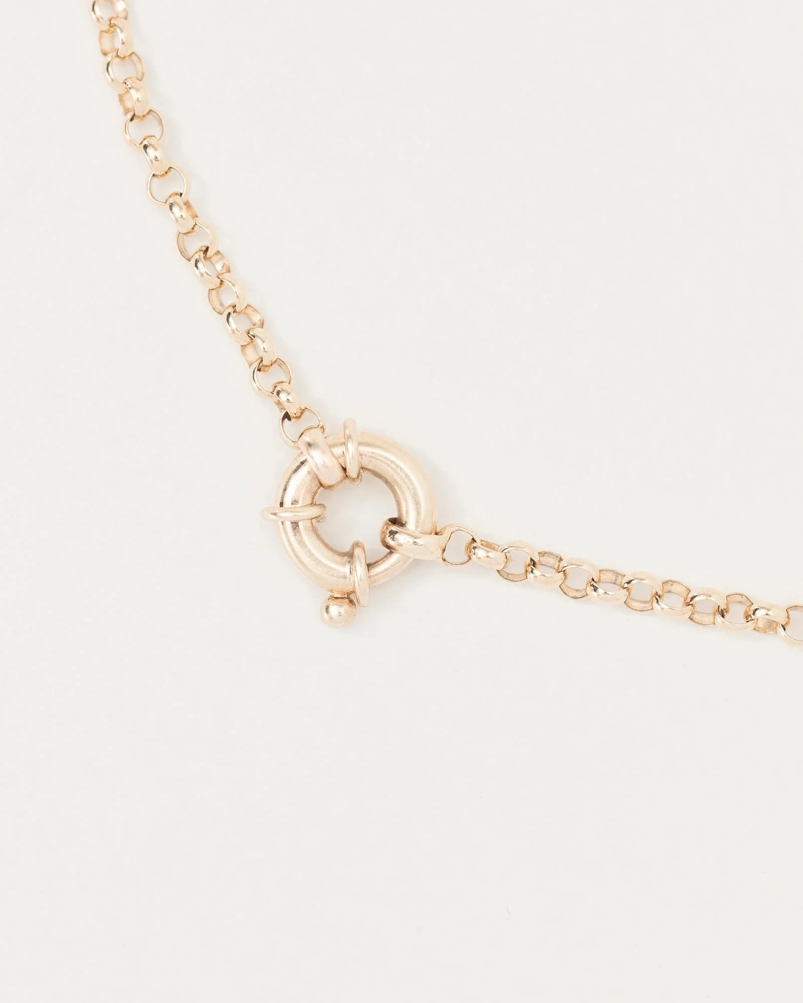 A chunky and bold gold belcher chain featuring a statement bolt ring clasp.