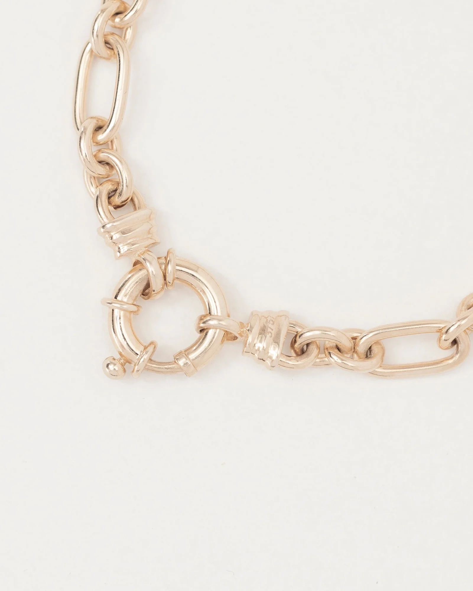 A chunky mixed links gold bracelet featuring a statement bolt ring clasp.