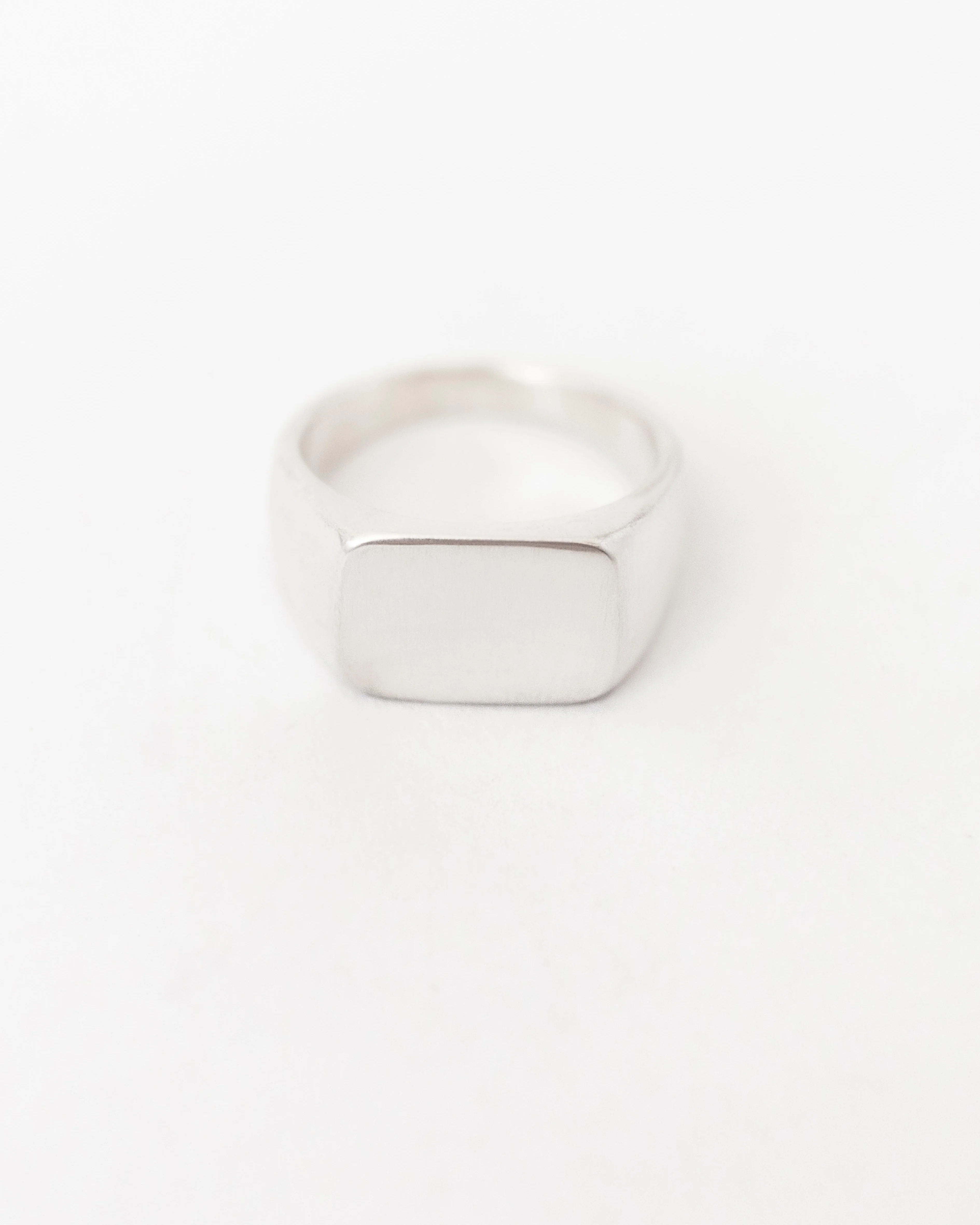 The Ellipse signet is a rectangle classic with a molten edge. With its incredibly smooth curves, it is a timeless yet versatile piece which can be worn as a pinkie signet or on any other finger.