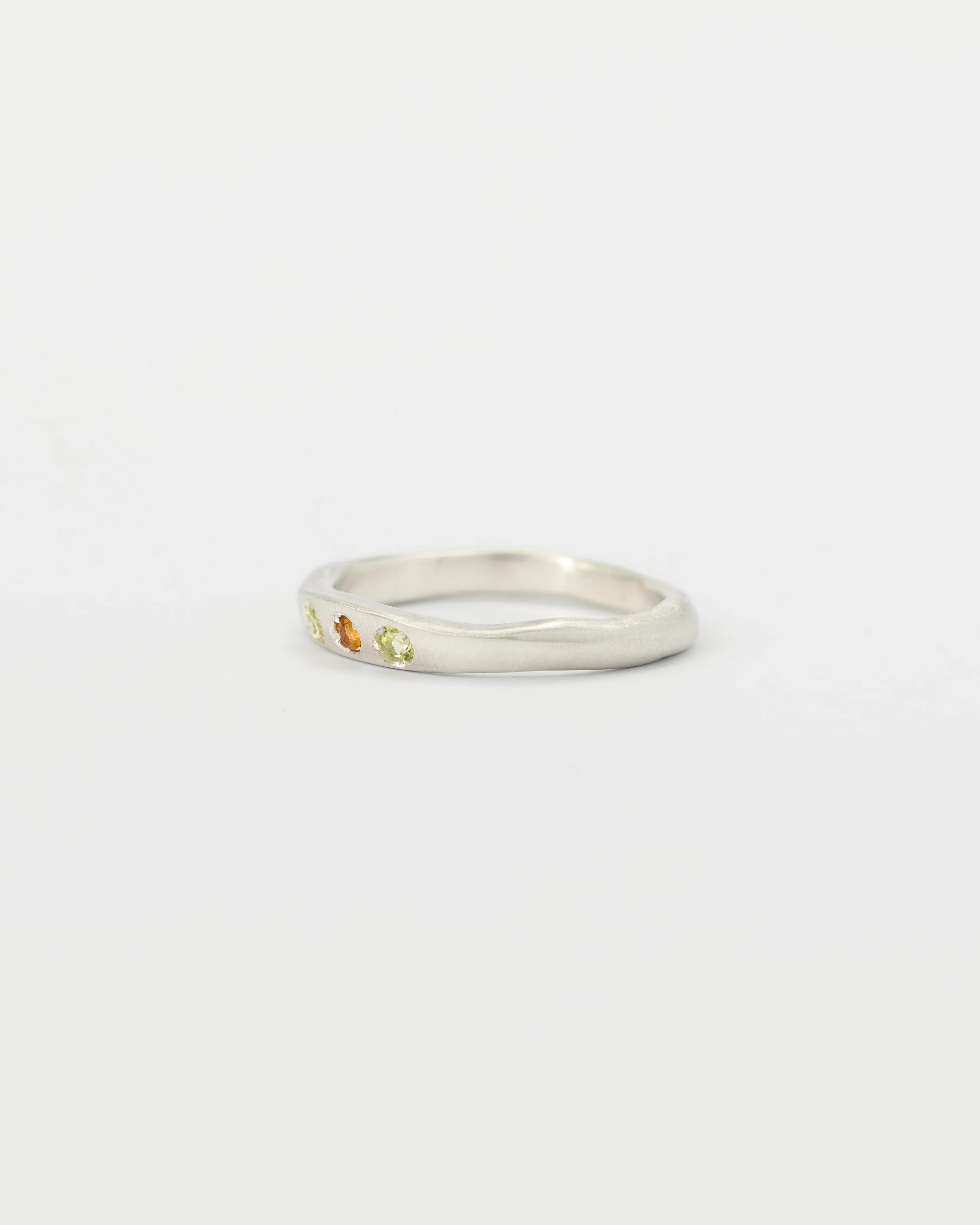 This deliciouslyĀ molten piece of recycled sterling silver is for lovers of unique rings, featuring multiple sparkly gemstones dottedĀ amongst the molten metal.