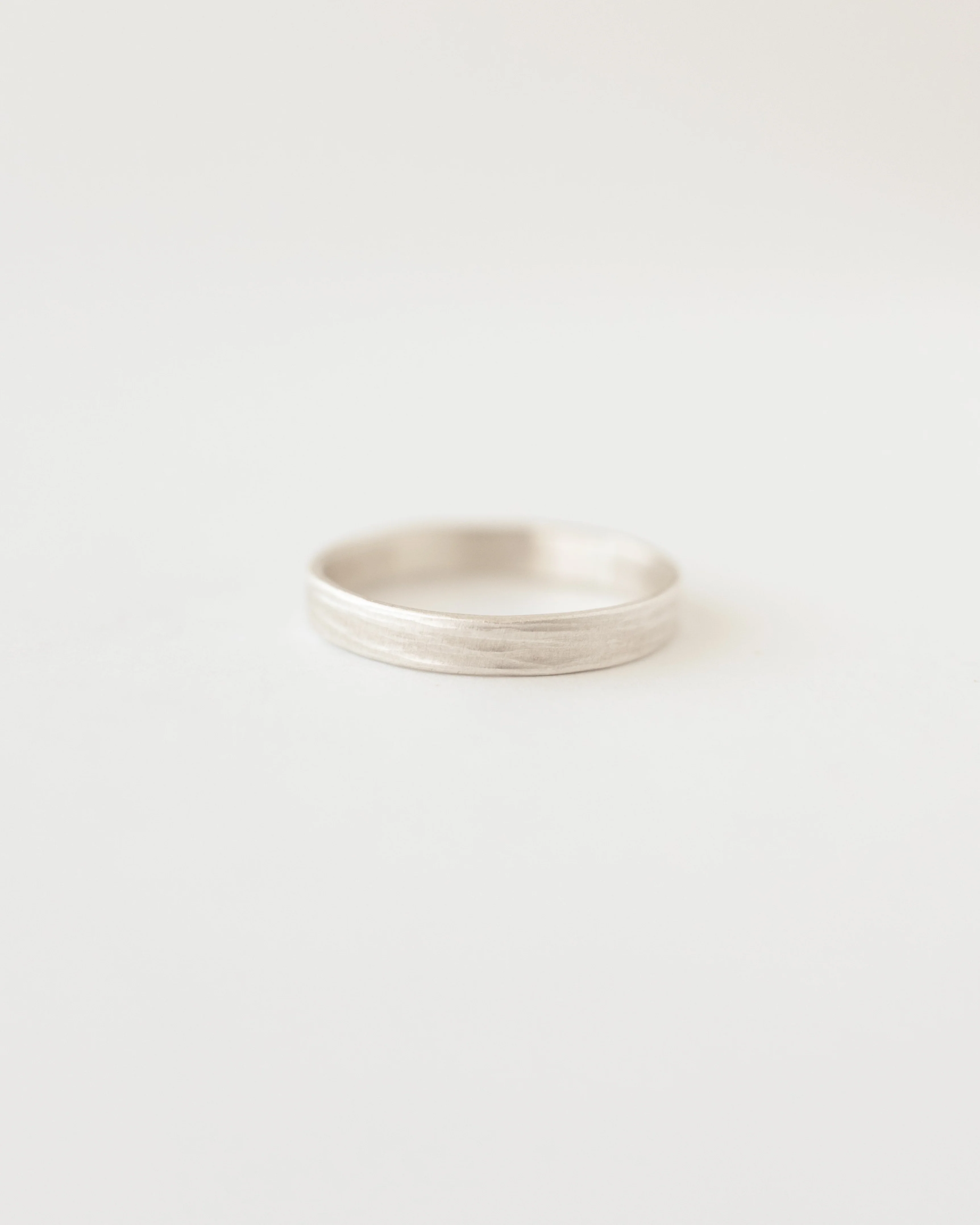 These fine textured silver band combines the sparkle and texture of a hammered effect in a fine and delicate band. Wear it stacked for style or on its own.
