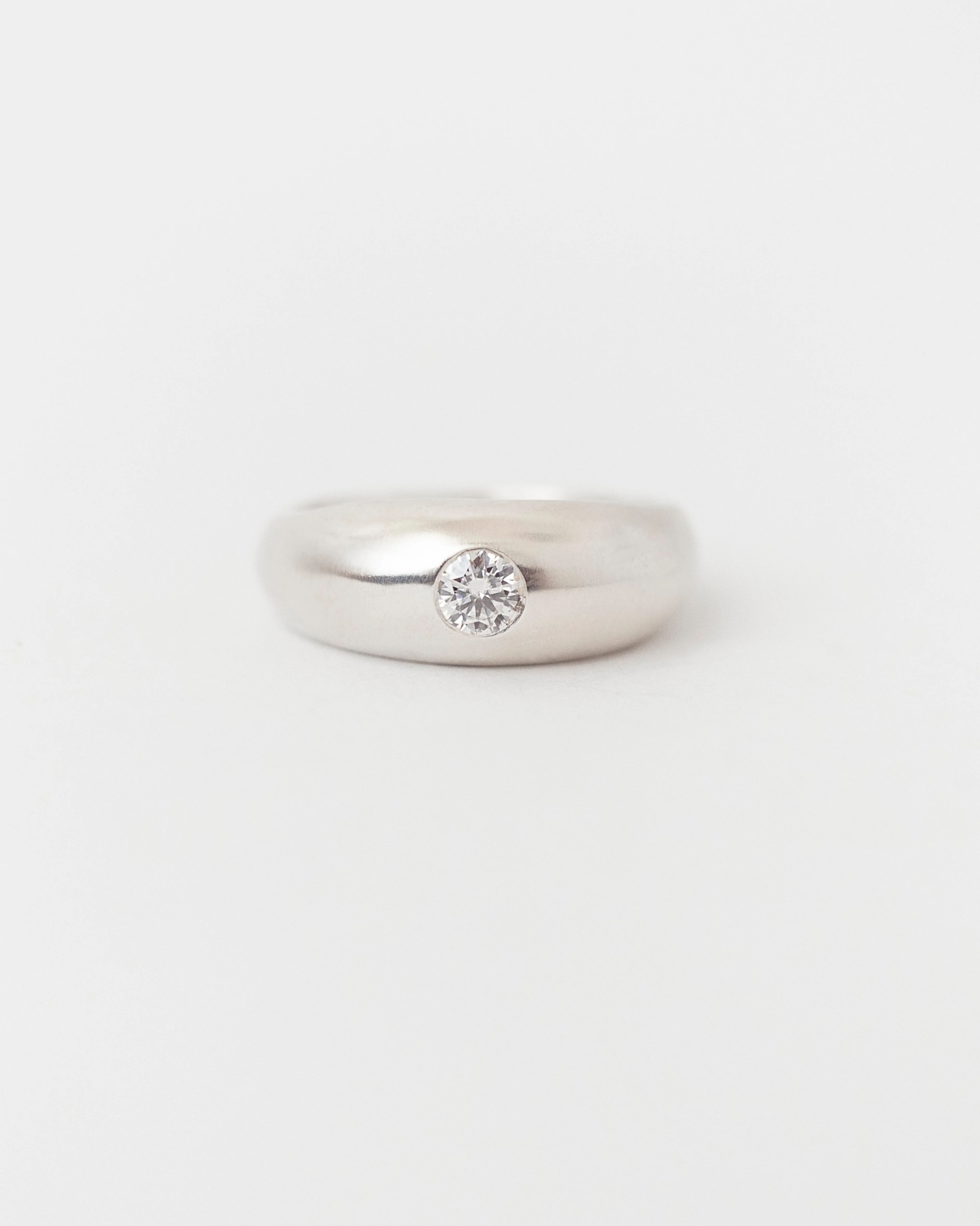 The Lune dome Une is inspired by the soft molten curves of the orb of the night - this deliciously chunky silver ring is finished with smooth rounded edges and is a bit of a statement piece, featuring a fush-set 0.25ct Natural White Diamond or Moissanite reminiscent of a full moon on a silvery night. Wear it on its own or dare to stack it with a fine Celestial or plain dome ring .