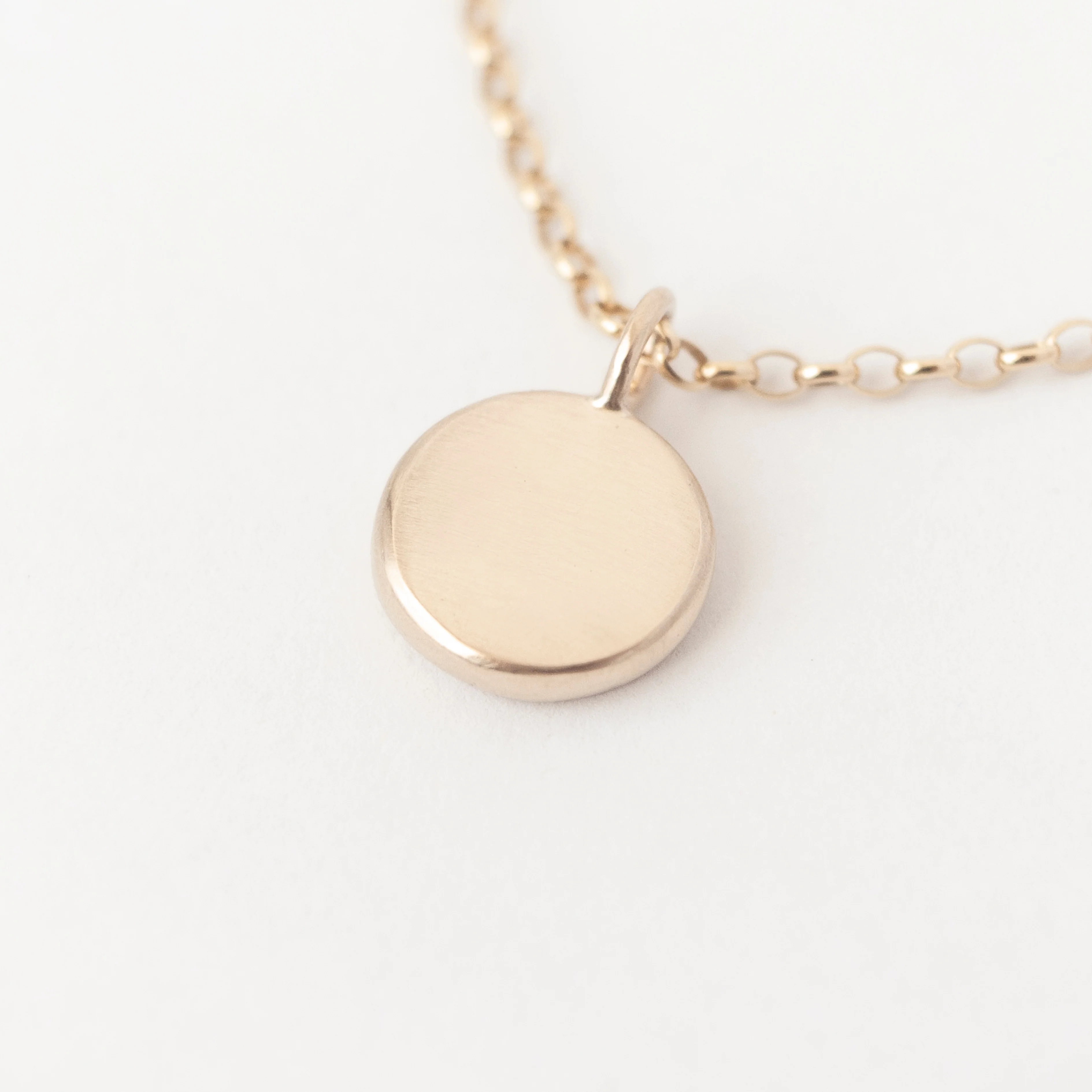 The Lune necklace is a chunky statement molten disc reminiscent of a golden night sky on a moonless night. With its soft, buttery curves, the Lune pendant is for the lovers of a simple yet eye-catching piece.