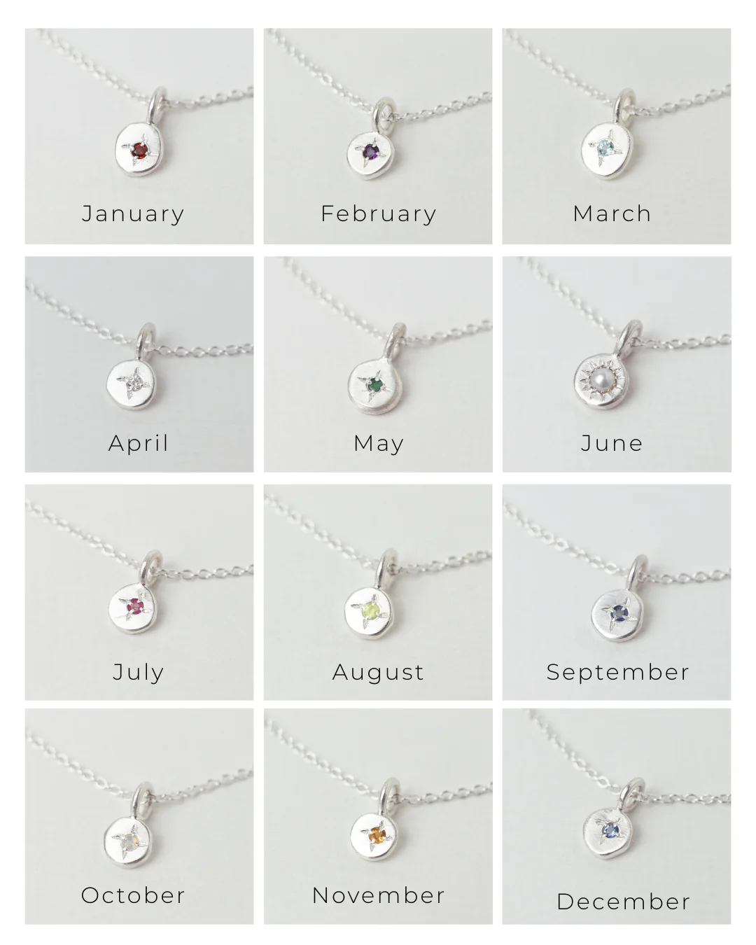 The birthstone necklace is a chunky little recycled silver pendant featuring your birthstone in a star setting. From January garnets to December tanzanite, the pendants can be worn on their own or stacked to represent you or your loved ones.
