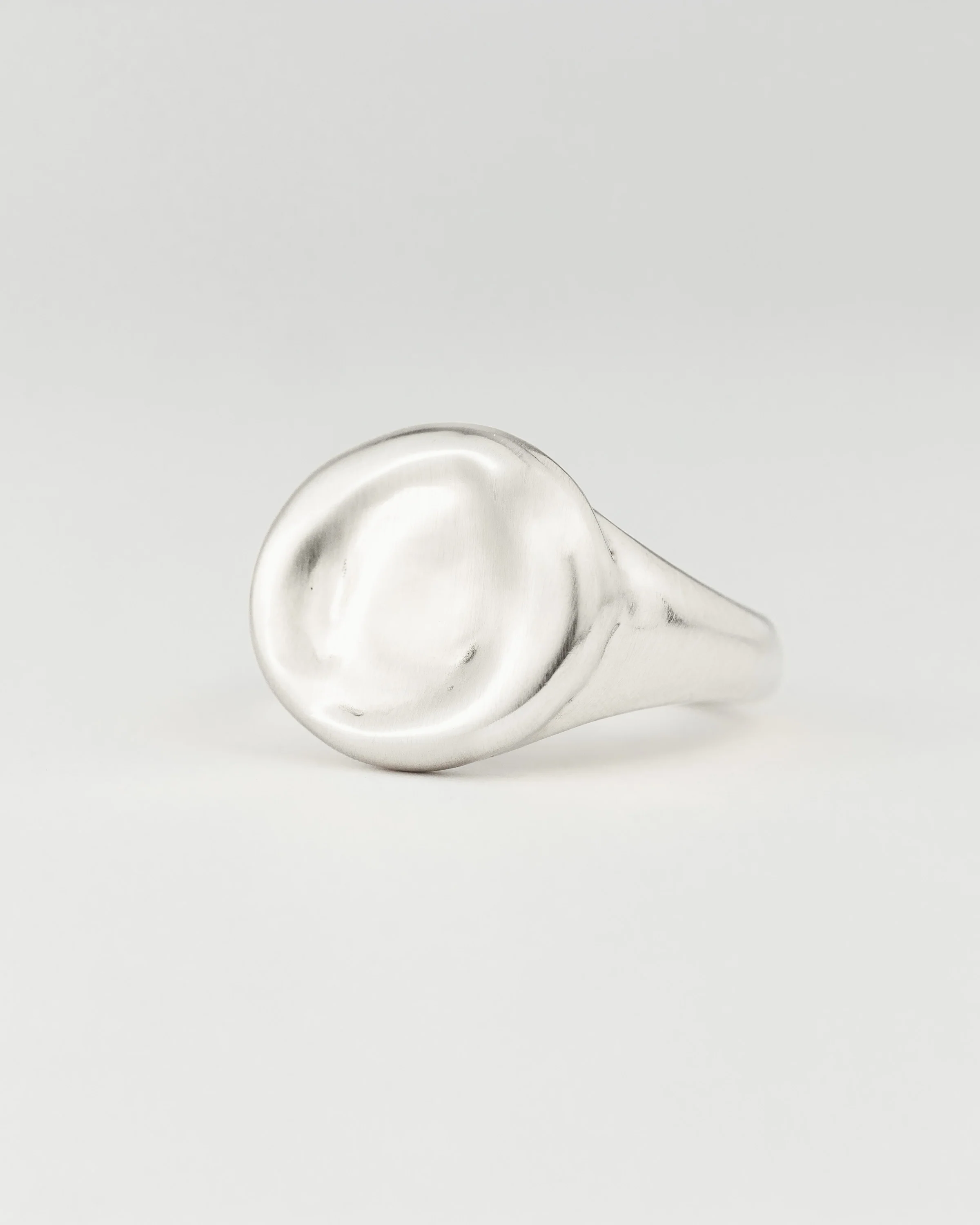 The Mother Moon Signet embodies our signature molten and organic form in a statement silver signet ring, its buttery curves & fluidity echoing the imperfect beauty and strength of motherhood.