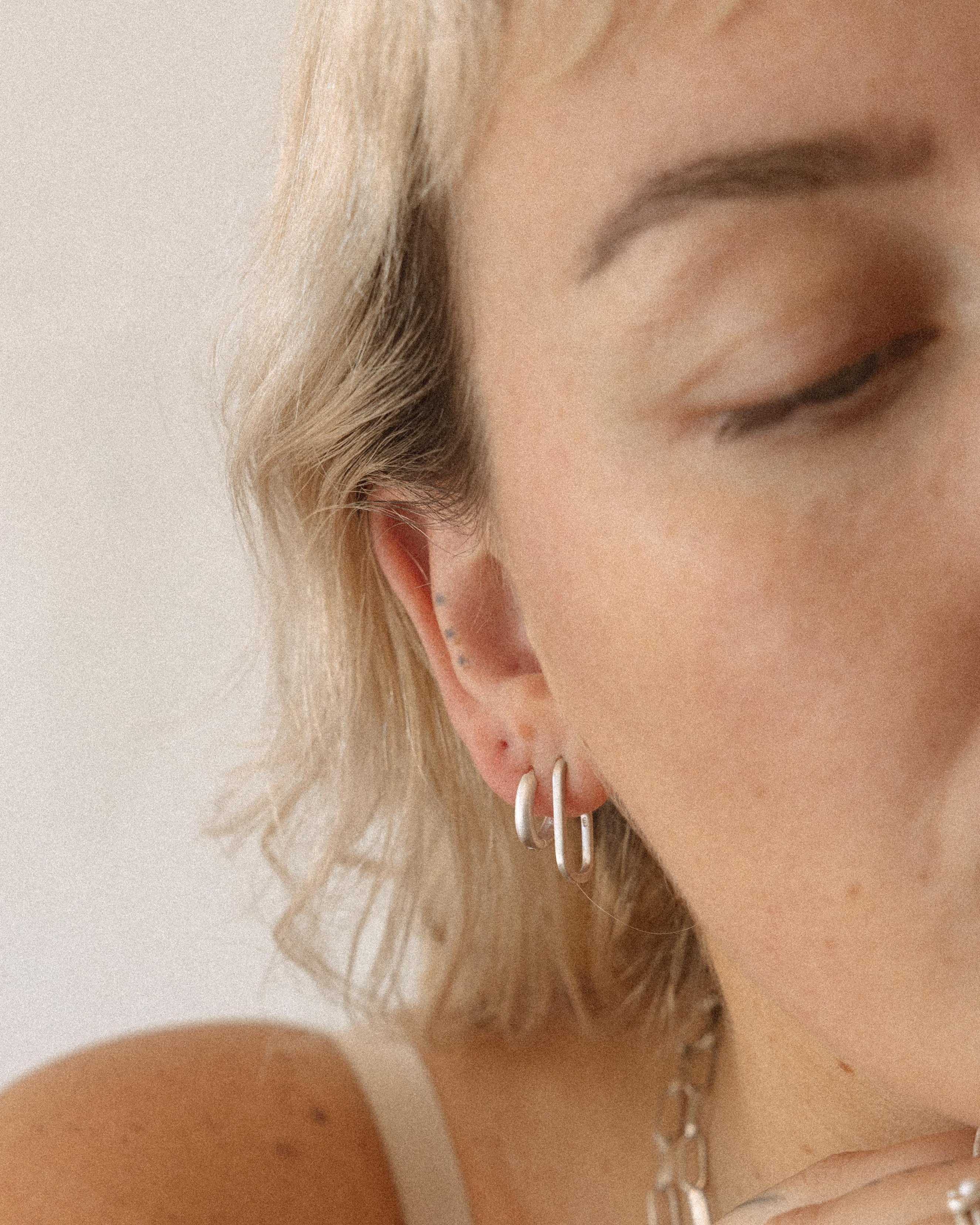 These gorgeous elongated rectangle hoops are, as their name states, an ear-hugging little slice of silver - perfect for layering and stacking or mixing and matching charms