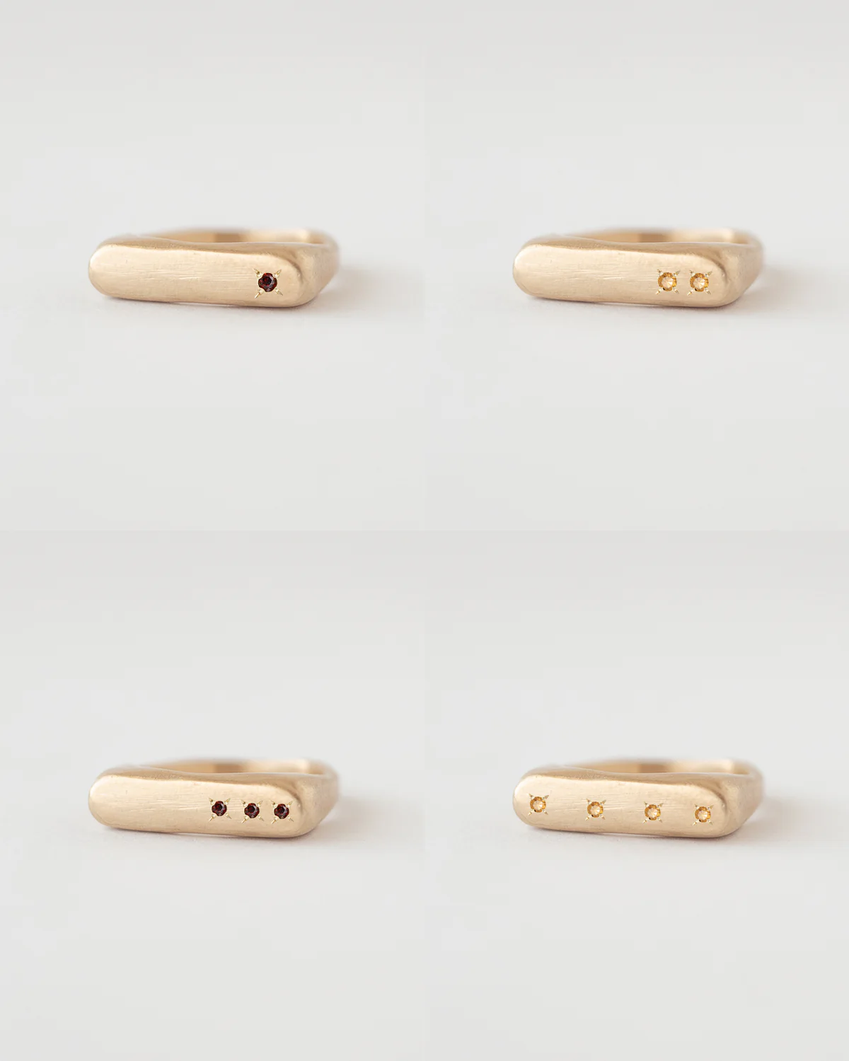 This deliciously chunky piece of recycled 9ct solid gold is for lovers of the heavy yet unique signet rings, featuring 2, 3 or 4 of your preferred gemstones.